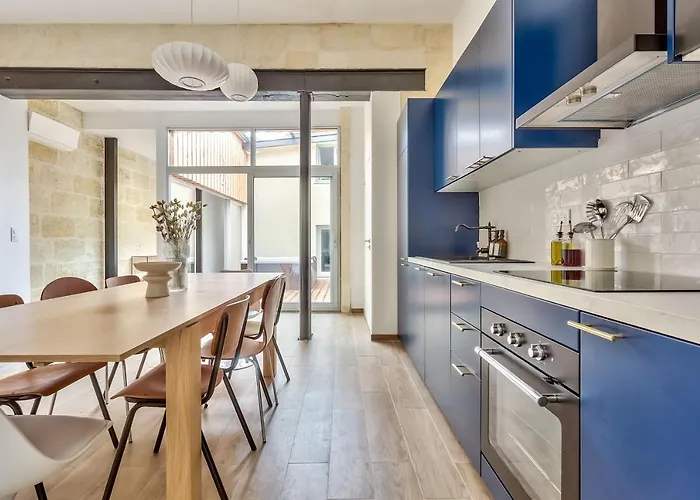 Просторные Апартаменты Nocnoc - L'Oli 102M2 Avec Patio Et Jacuzzi с джакузи и гидромассажной ванной расположены в историческом районе Бордо, менее чем в 11 минутах ходьбы от Музея Аквитании. Апартаменты находятся в нескольких шагах от La Guitoune и предлагают гидромассажную ванну, спа-терапию и солнечную террасу.
